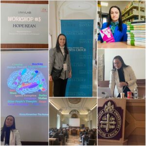 W ramach wyjazdu dr Król-Gierat odwiedziła również Pontificia Università della Santa Croce, gdzie wzięła udział w warsztatach nt. „Beyond the Brain: Neuroscience – Brain Science of Dialogue” przeprowadzonych przez dr Hope Kean z Massachusetts Institute of Technology (MIT), USA. Opierając się na badaniach neurobiologicznych dotyczących afazji, warsztaty te pomogły uczestnikom odkryć, w jaki sposób struktura neuronalna mózgu umożliwia dialog.